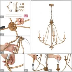 - UL LISTED & DURABLE: For safe use, this gold farmhouse chandelier is UL-listed for dry locations. Sturdy metal construction is built to last and offers a clean, polished look