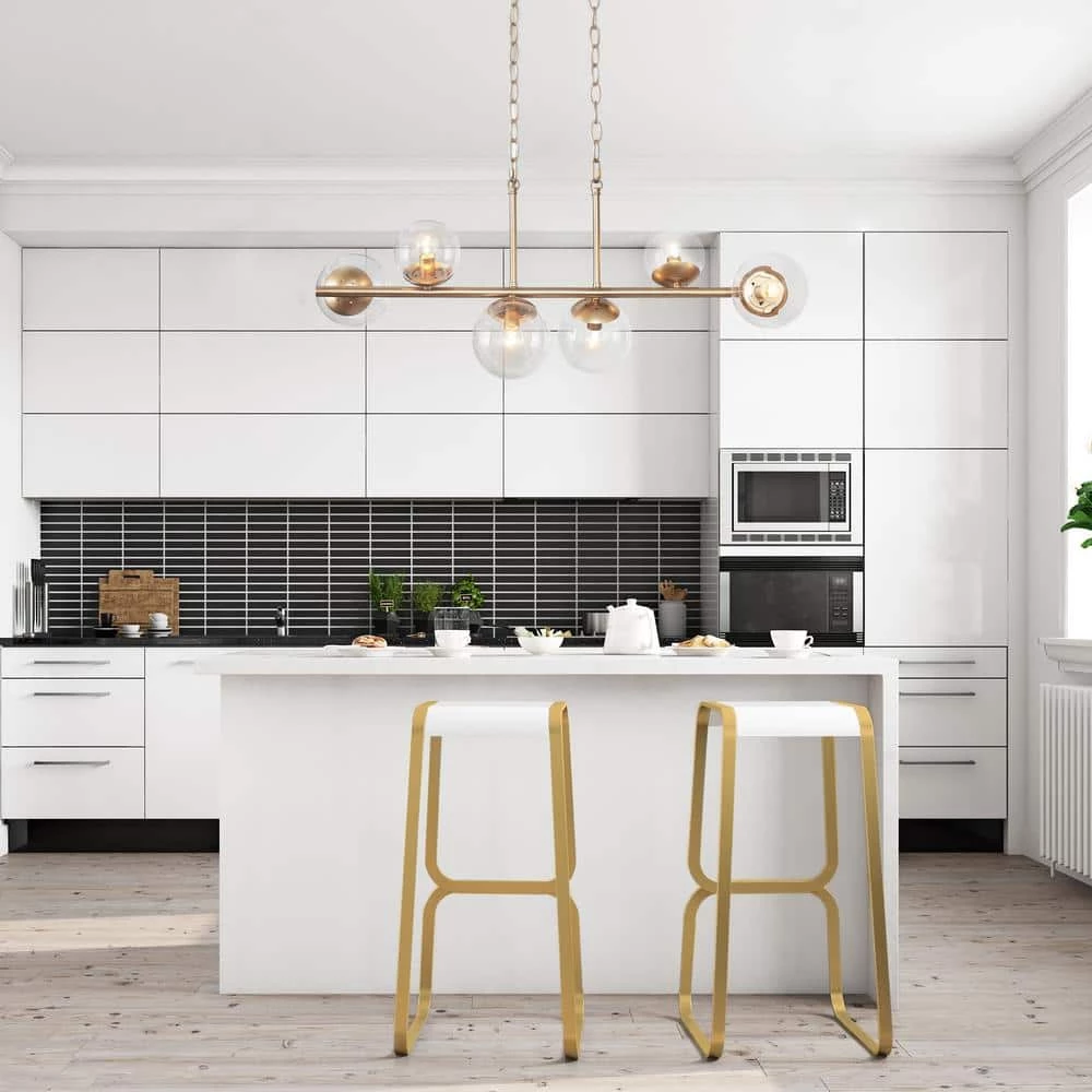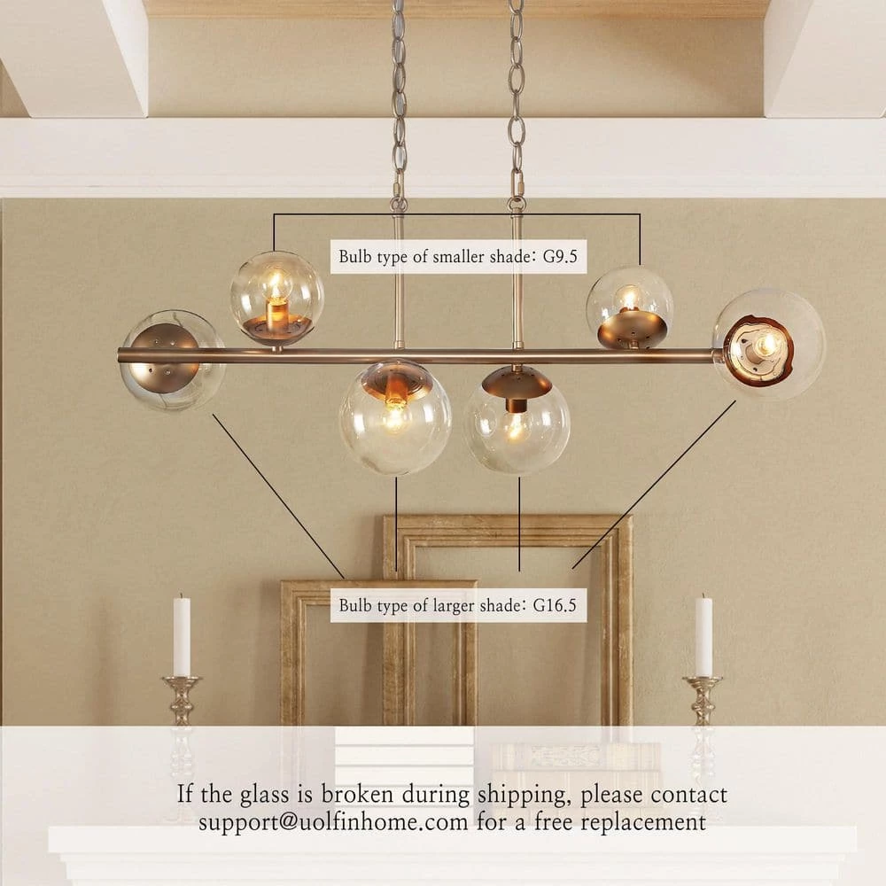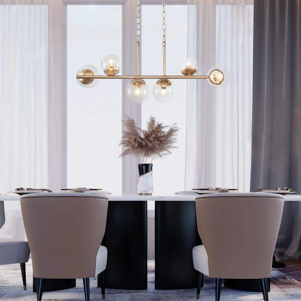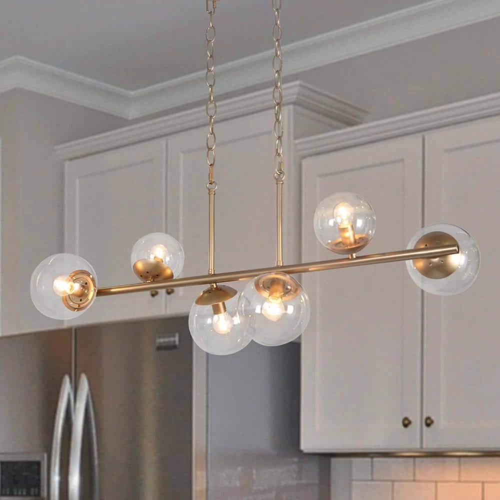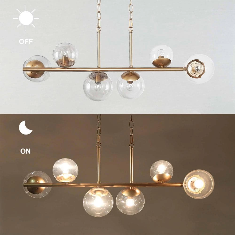 - MODERN ISLAND CHANDELIER: The golden frame, the globe clear glass lampshade, and the sputnik shape design have a unique fashion sense, but only the simple golden color is simple and easy to match
