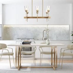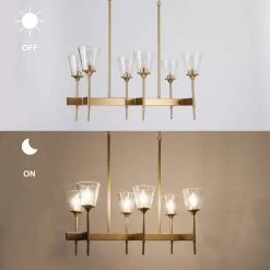 The 6-Light modern gold kitchen island chandelier with Clear Glass Shade is perfect to decorate your classic room. When you use warm light bulbs for this gold kitchen island light, it is like lighting 6 candelabra at the same time, which not only satisfies your need for light well but also successfully introduces the vintage style into your house as well. When you use cool light bulbs, this is like six goblets, bringing mood and ritual to your life. You can feel free to choose this lamp for your kitchen, bedroom, dining room, stairwell, because modern transitional, traditional, retro, farmhouse style and other various home decorating styles can easily match with it.