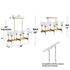 - ETL Listed and durable: for safe use, this brass gold farmhouse chandelier is ETL-Listed for dry locations, sturdy metal construction is built to last and offers a clean, polished look