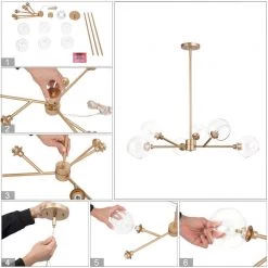 - ETL Listed and durable: for safe use, the modern contemporary island chandelier, 6-light gold brass sputnik chandelier ceiling light is ETL Listed, sturdy metal construction is built to last in dry locations and offers a clean look