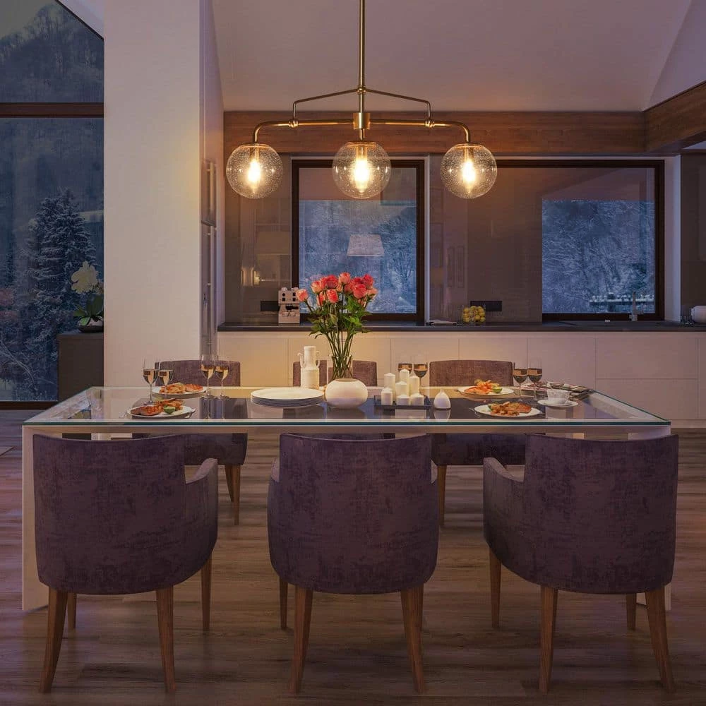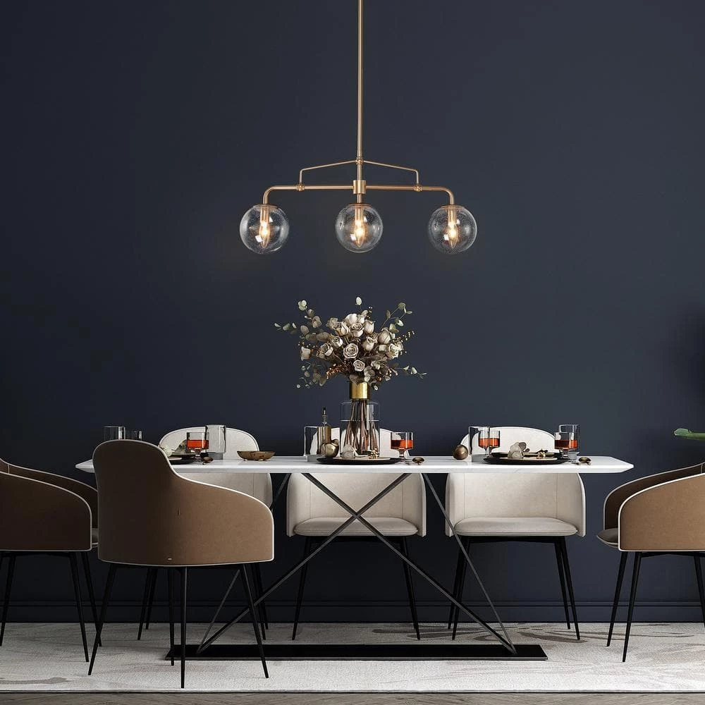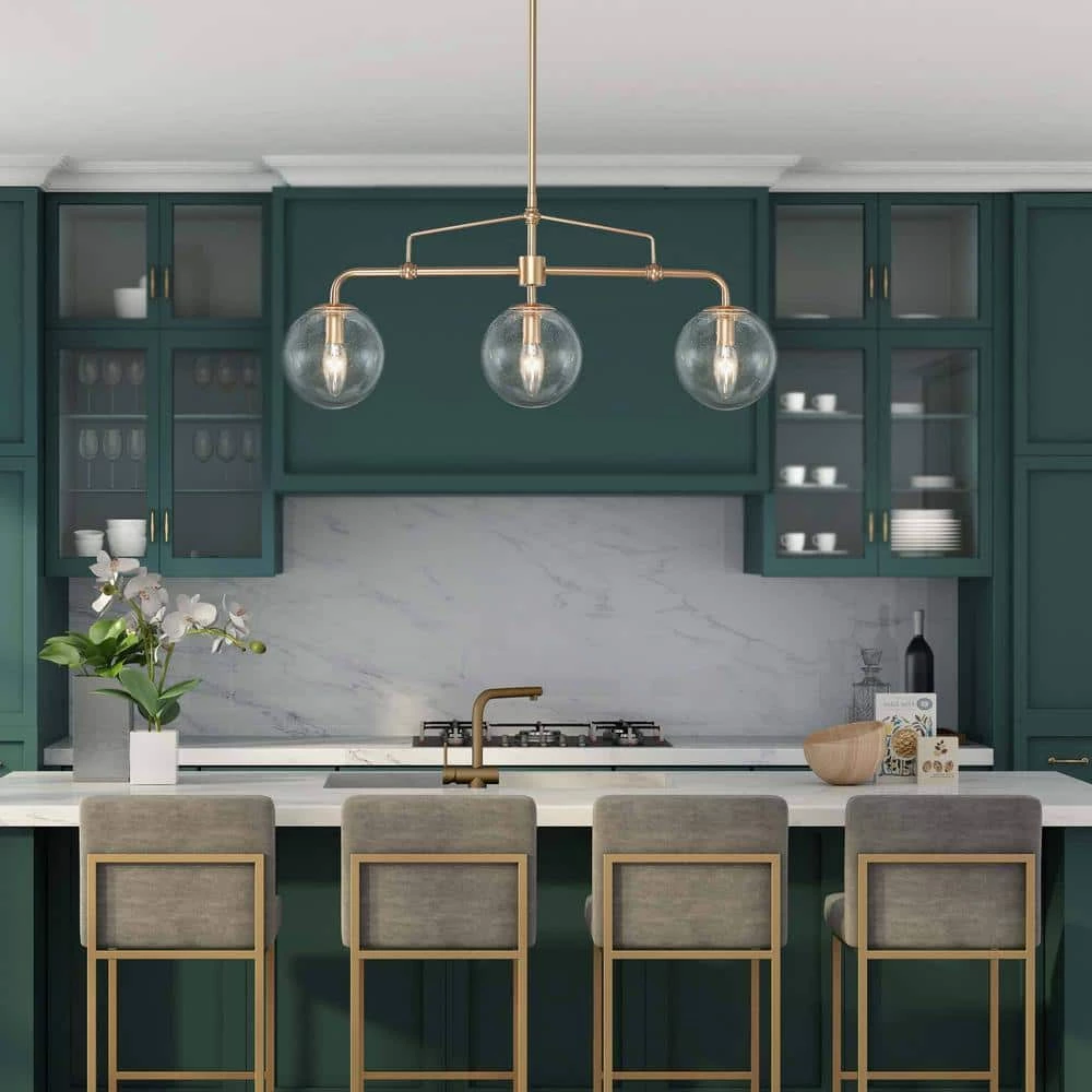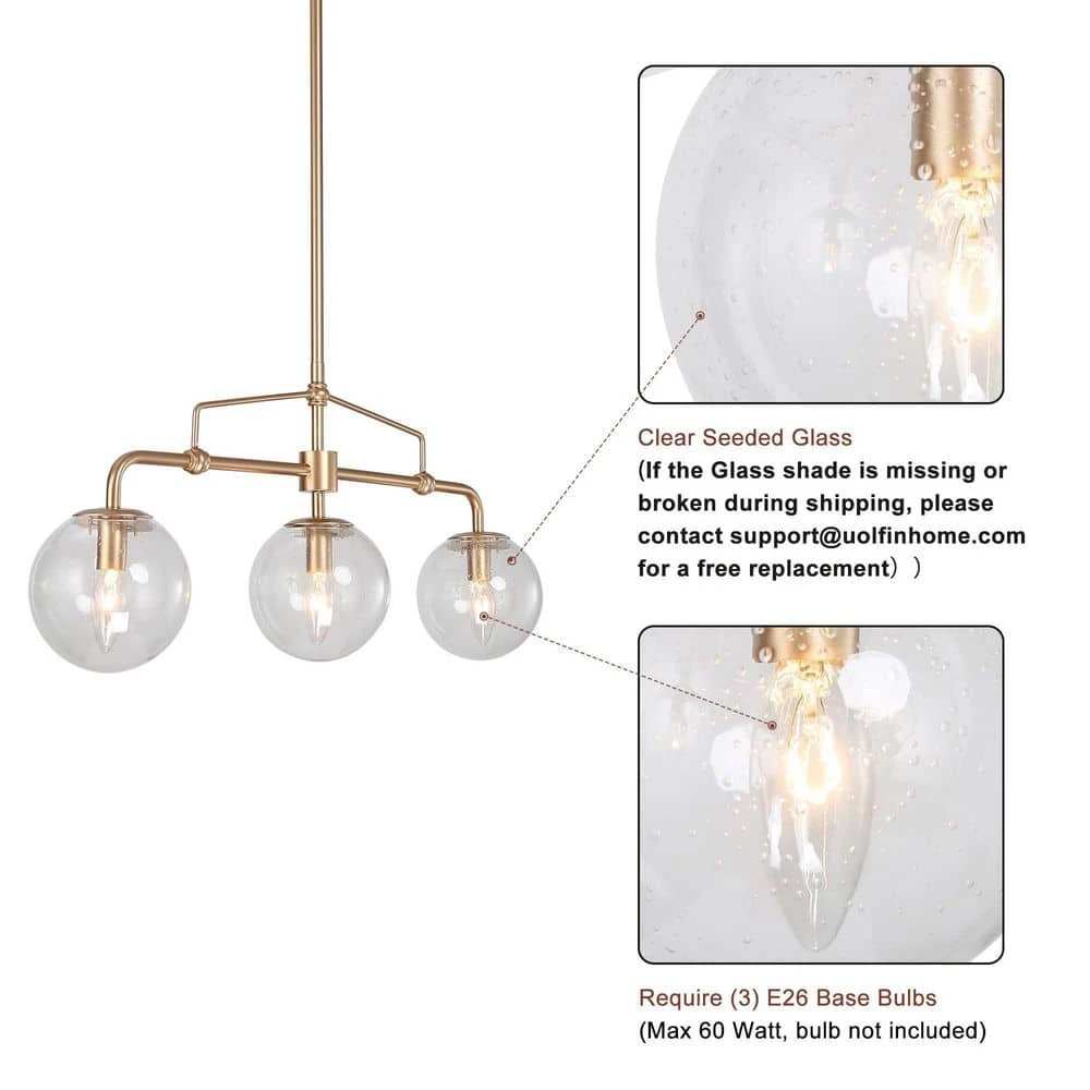 A perfect mix of contemporary design, this modern island chandelier 3-light gold sputnik chandelier hanging light fixture by uolfin naomi collection is ideal for adding a simple yet elegant appeal to your glamorous kitchen island, dining room, foyer/entryway, living room, or bedroom. Delicately crafted of sturdy metal, its champagne gold finish and seeded glass globes create instant romance ambiance in your space, making the sputnik pendant light easily adaptable for a range of home decor. This 3-light gold linear glass pendant light comes with a max 62-inch adjustable down rod that accommodates multiple ceiling heights. Whether in the countryside or a busy city, this on-trend candlestick island pendant light fixture will always add modern appeal to any interior by its seamless minimalist silhouette. Listed by UL for proven durability without compromising function and aesthetic value.