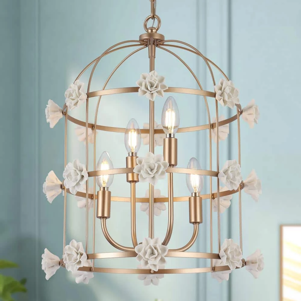 Bring nature into your house with this Uolfin gold birdcage ceramic flower bedroom chandelier. The unique and ingenious design of the birdcage with 4 candle-shaped lamp holders resembles the birds singing a melodious song inside. Outside of the cage, white ceramic flowers come to life, blooming to the extreme to retain the most beautiful look. Just a chandelier like this can add a lot of life to your house. No matter what style of home decoration you are, this lamp can be melted into your house without any dissonance. When this white chandelier hangs above your room, it looks like a small hanging cage or a lantern. If your room is looking for a chandelier, this modern geometric chandelier must be a good idea.
