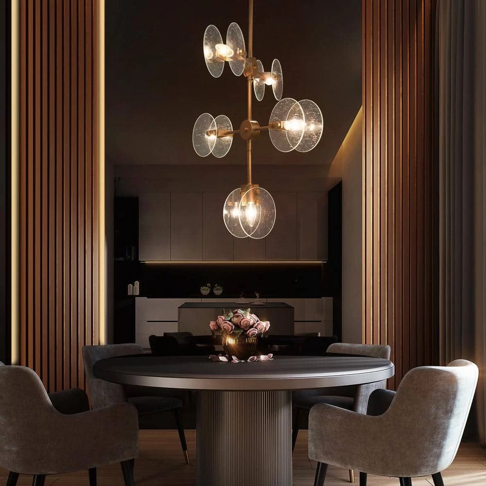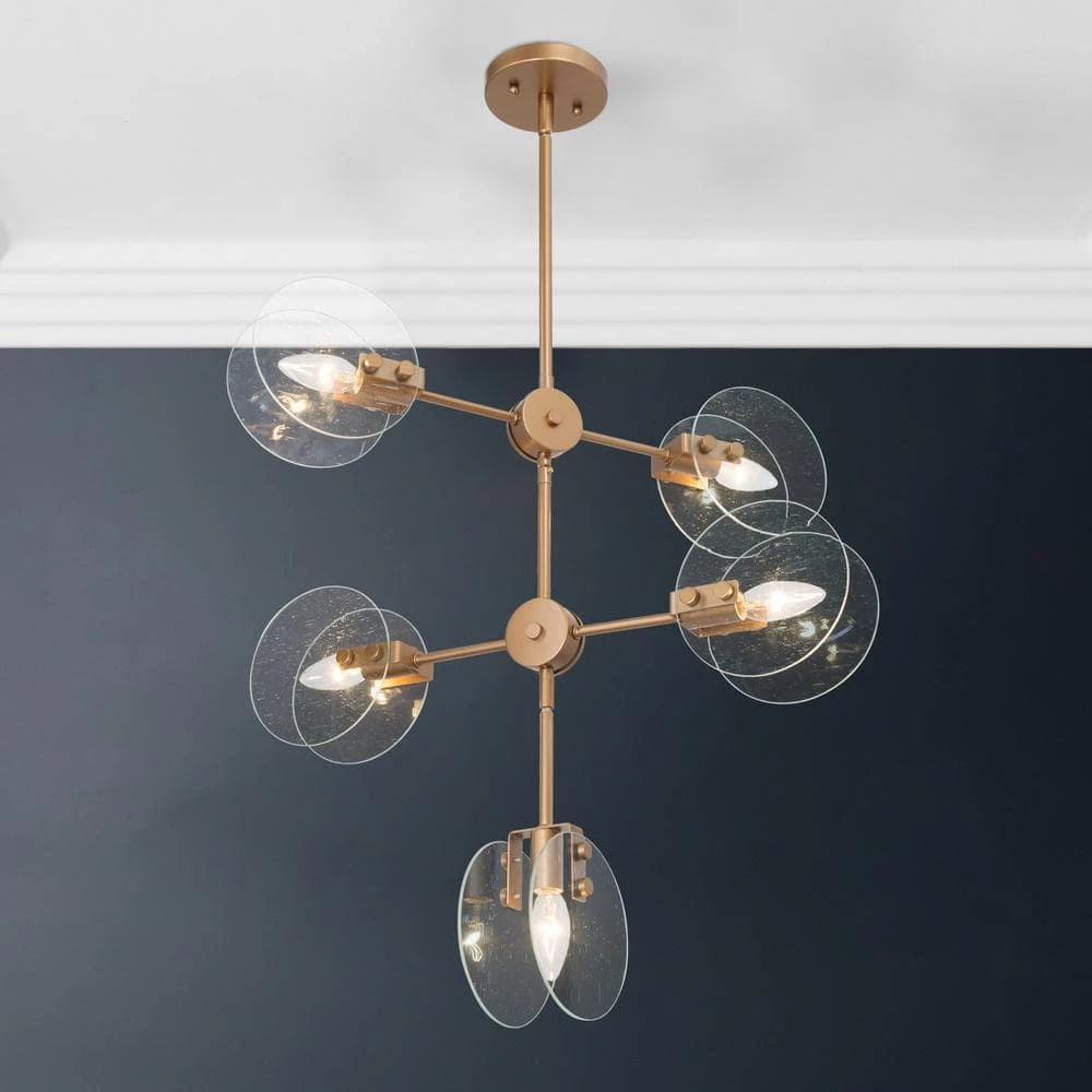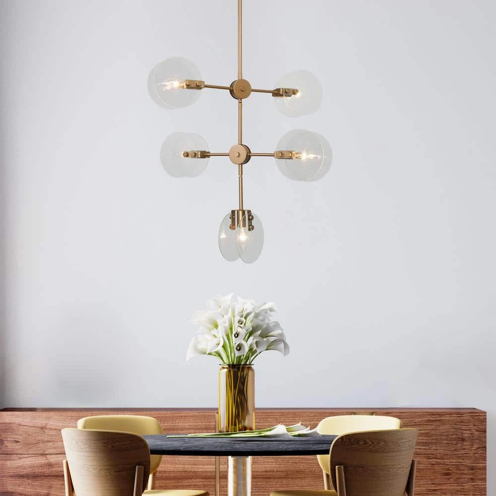 - EASY TO MATCH: This gold chandelier is easy to match. The art deco can easily be integrated into your room. Suspended alone, in pairs, or in multiples, an ideal hanging light in use over your hallway, foyer, entryway, stairwell, dining room, kitchen island, and breakfast nooks, providing the perfect balance of style, functionality, and class