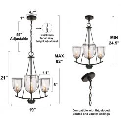 - Adjustable length: evenin a room with high ceilings, the chain of 59 in. maximum still allows you to have an ideal hanging length