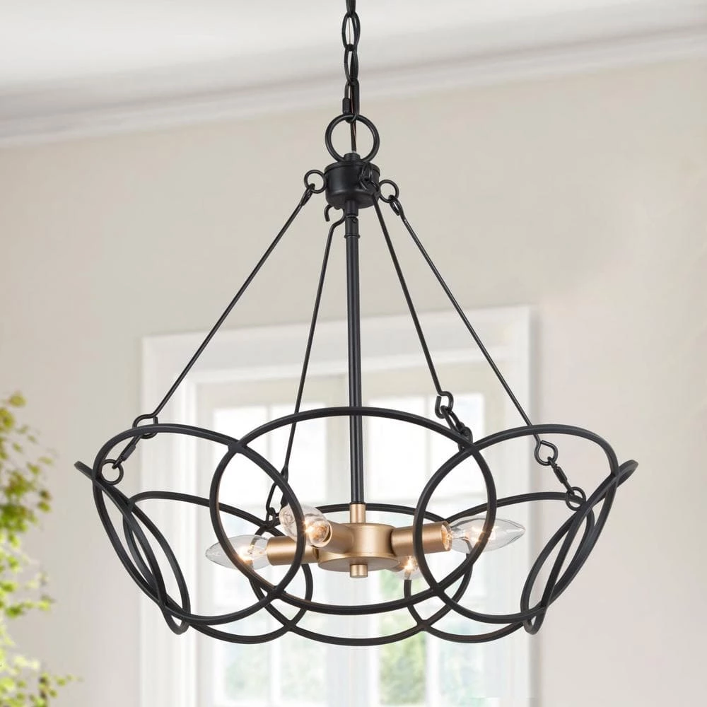 - MODERN FARMHOUSE APPEAL: Geometric geometric flower basket design and timeless black finish enhance the modern industrial sense of the chandelier light, and create a transitional farmhouse vibe