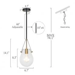 Brighten up indoor spaces with this Uolfin Black and Brass Modern Transitional Hanging Pendant Light. Combine modern, farmhouse, country, industrial, and other styles and designs into one cohesive design without losing harmony. Decorated in a vintage black finish, its gourd glass shade not only protects the bulb(not included) from dust but also emits light through them and casts beautiful shadows on the walls to decorate your charming home. The fixture body is connected to the round canopy by 60-inch adjustable suspension cords, suitable for flat or sloped ceilings. Suspended individually, in pairs, or in multiples, it is the ideal hanging light. Whether it’s in the kitchen island, living room, hallway, dining room table, foyer, bedroom, or stairwell, it’s a great place to hang this pendant light.
