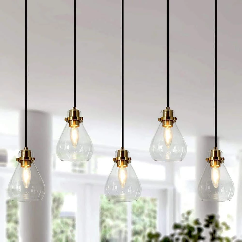 - TEARDROP-SHAPED GLASS SHADE: All the clear glass shades are shaped into a unique teardrop shape, showing off the beauty of curvaceous, softening the light, and ensuring enough amount of illuminance.