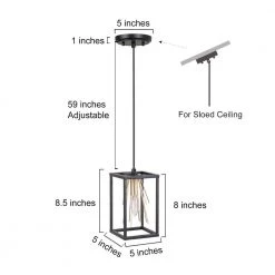 - DIMENSIONS: this geometric pendant light overall measures 4.3 in. W x 4.3 in. D x 8.7 in. H, round canopy: 5 in. Dia x 1 in. H, adjustable hanging wire: 59 in. L (overall height max: 68.5 in., overall height min: 12.5 in. )