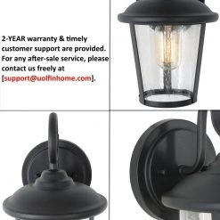 The clean lines and hand-riveted accents make the black outdoor wall light an ideal choice for industrial-style exterior decor. A rustic lantern-shaped framework with clear glass shade provides an unobstructed view of the lantern’s sleek interior. The matte black finish further enhances the chic appearance of this refined collection, transitioning comfortably from traditional farmhouse to modern industrial decors. This Uolfin Luxe outdoor light can reach the function that other outdoor lights do and even better. Abandon complicated decoration the outdoor wall light has a rustic modern aesthetic with a cage-shaped frame and cylinder clear glass shade which protects bulb from the dust and weather conditions. Perfect for mounting by the back door, by the garage, or as part of a pair by the front entrance, this wall lantern sconce will add light and flair to any outdoor space.