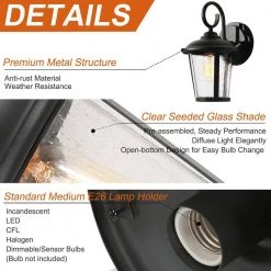 - ETL Listed and durable: for safe use in wet conditions, this outdoor wall light is ETL Listed, the sturdy construction offers long-lasting and durability
