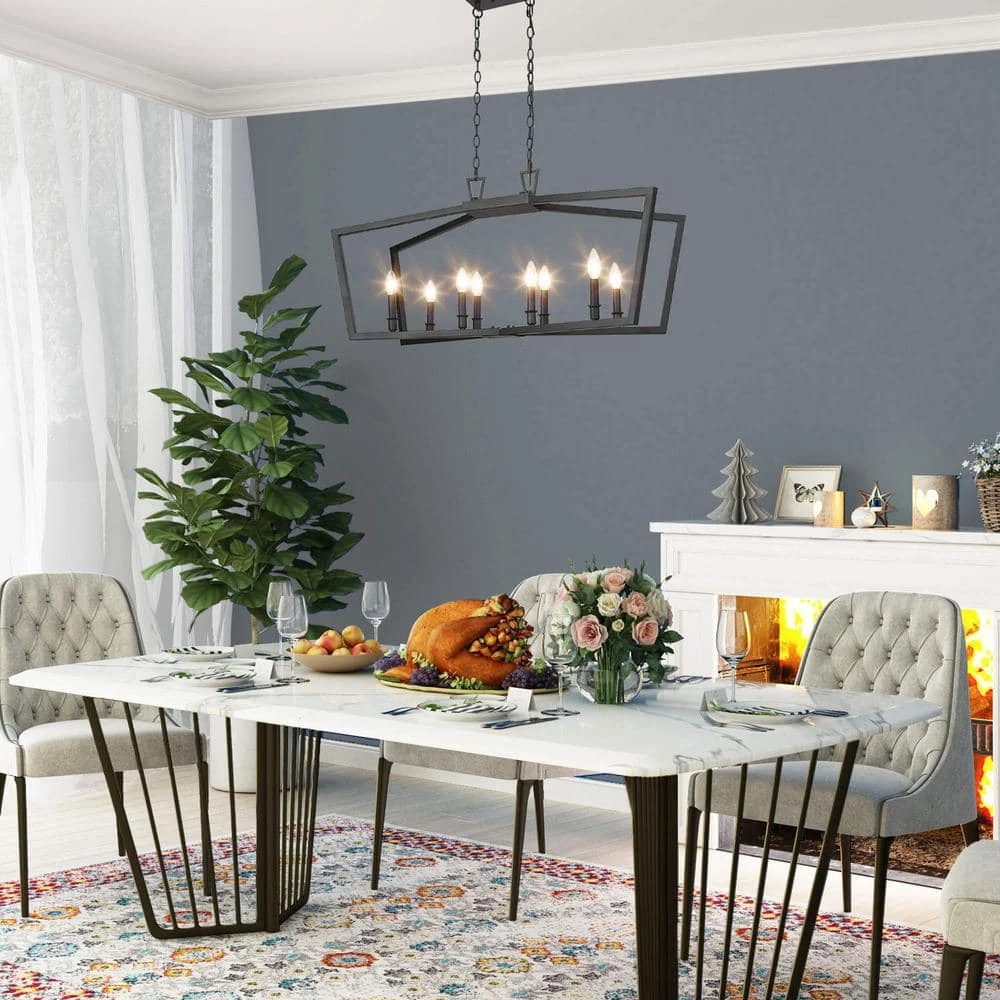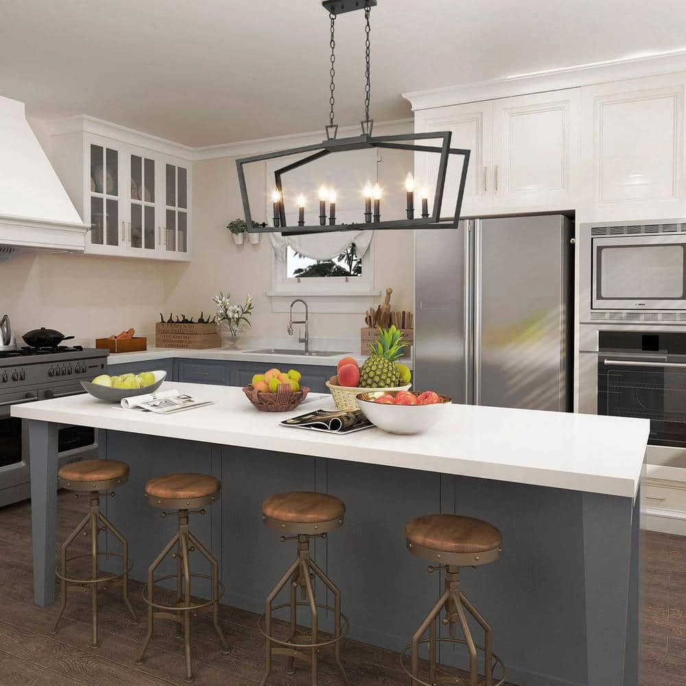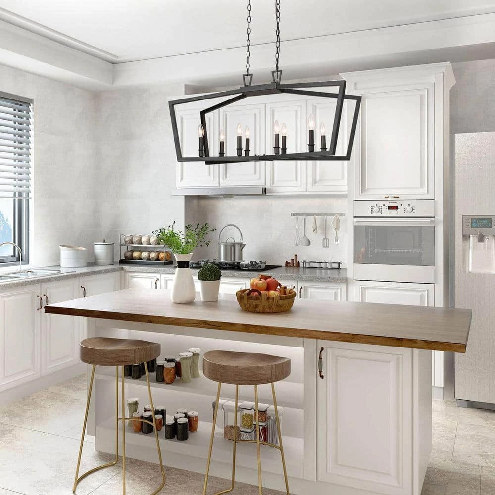 - MODERN FARMHOUSE CHANDELIER: Marrying modern and farmhouse elements, the Uolfin Lighting exhibits farmhouse style indoor lighting with rustic, industrial appeal, trying to enhance your kitchen island or dining room table with the classic styling of this 8-light island chandelier