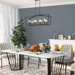 The modern farmhouse black geometric candlestick chandelier is simple in shape but not lacking in design. It is also able to satisfy the need for minimalist installation as well as timelessness. If you are a minimalist, then this industrial black large pendant light is made for your home. The 38 in. light fixture can use up to 8 bulbs of up to 40 watts (not included), able to illuminate a large enough space. The dining table in your dining room or the island in your kitchen needs a chandelier like this to instantly illuminate the space. The completely open design allows you to clean it without worrying about it at all. If you want to refresh your home in the shortest possible time, try this classic black chandelier that is sure to bring a whole new experience to your room. Whether it’s a bedroom, stairwell, studio, or guest room it’s a great place to install this versatile chandelier lighting. Be bold and try it out, you’ll get a surprise there!