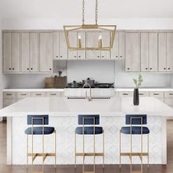 This modern farmhouse golden geometric chandelier by Uolfin Lighting will satisfy your imagination of lighting. The X-shaped cage metal frame looks more fashionable, simpler, and more attractive than other products, and is not easily outdated. This linear chandelier by Uolfin combines modern minimalism with a retro golden appearance and is most suitable for transitional designs of decorating kitchen islands, stairwells, dining rooms, living rooms, entrance halls/entrances, etc. The 4-light pendant can provide sufficient light to the space where it is hanging. Please don’t forget the perfect Uolfin gold series, in which all lights have geometric shadows and golden embellishments, which can elevate your home decoration level. Purchase a set to get the consistency and completeness of the appearance. This fixture also has a 6-Light version, as well as an 8-Light version in a larger model design. You could choose the corresponding size according to the size of the space.