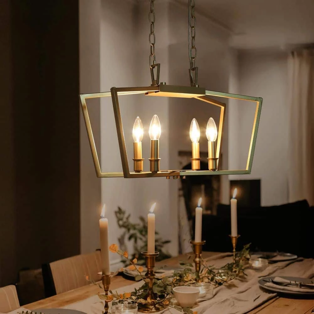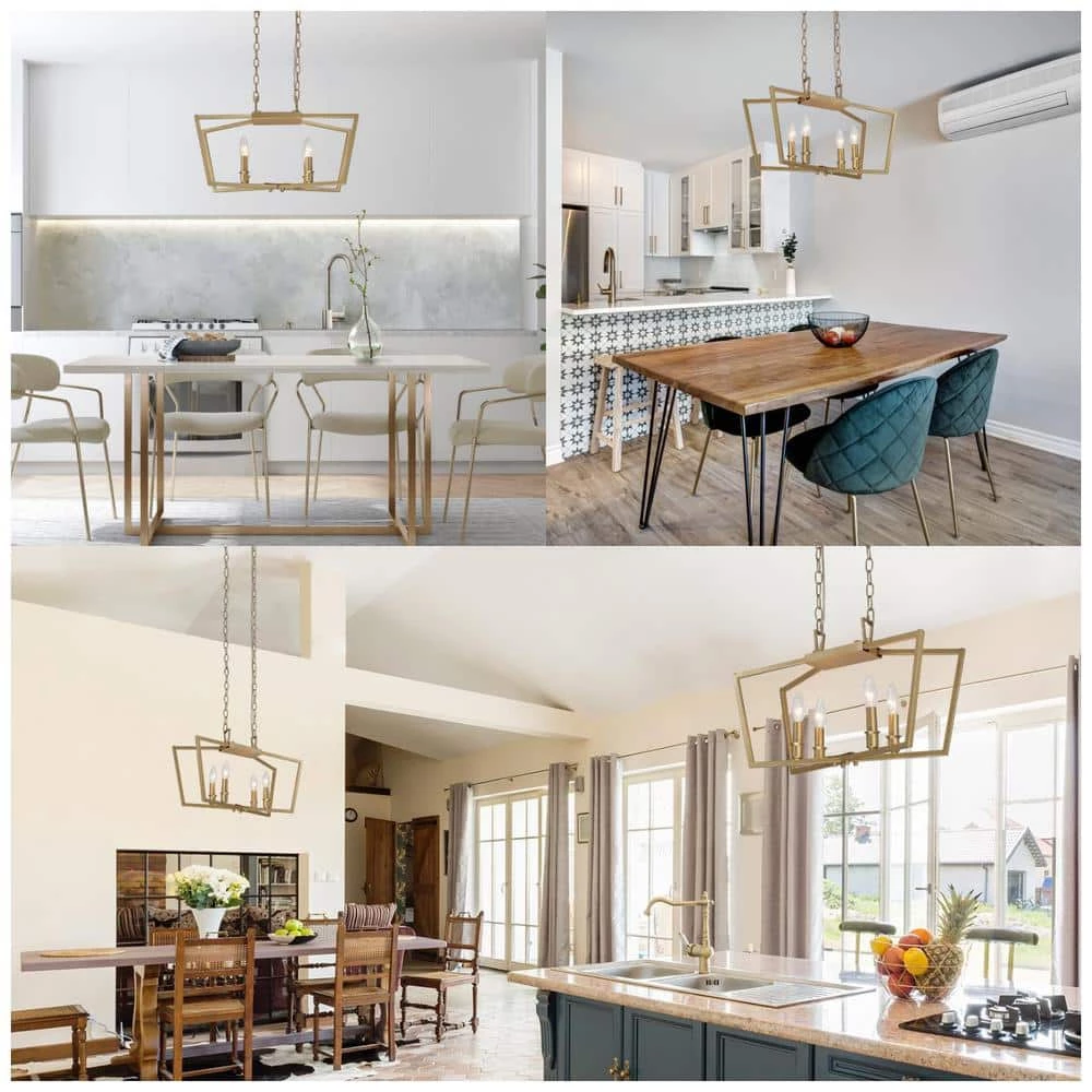 - MODERN MINIMALIST CEILING LIGHT: Looking for a sassy modern indoor gold island chandelier to take the place of outdated ceiling light or other hanging fixture, this modern candlestick chandelier, 4-light gold island chandelier ceiling light fixture by Uolfin Lighting offers a fashionable modern elegant cage shape with classic candle style