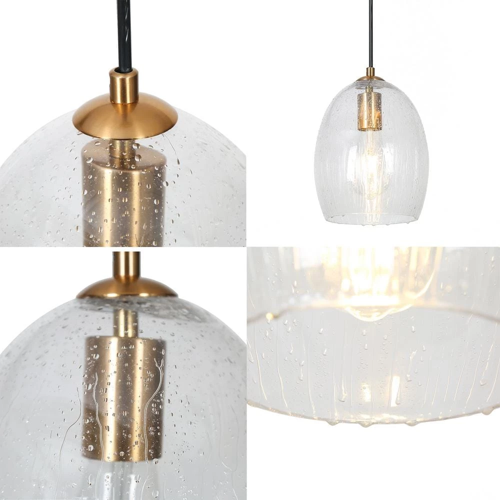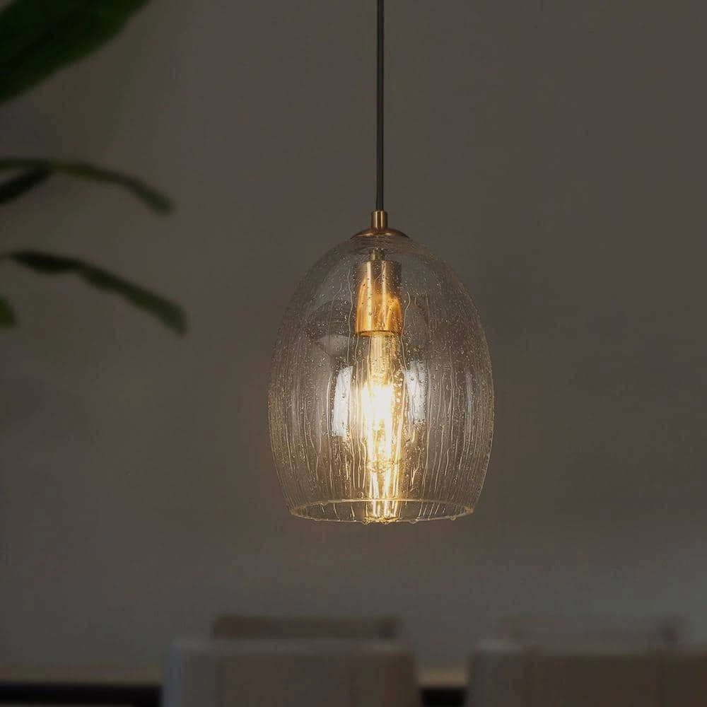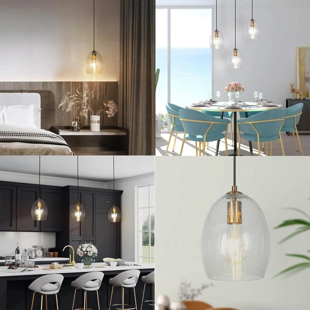 When this shiny electroplated brass industrial mini pendant light by Uolfin Lighting walks into your room, it not only illuminates your room but also brings a special space. This lamp is suspended with a strong cord and under the modern gold lamp holder is a water-rippled glass lampshade which is shaped in a bell design. The shape is simple, but it is mixed with modern, farmhouse, country, cottage, minimalist, industrial and other styles. Because it can be easily blended into various home improvement style houses. Also, its unique glass manufacturing can bring you a different equivalent experience. in this classic golden mini chandelier, you can choose 1, a pair or multiple hangs to cope with different space sizes. The kitchen, living room, bedroom, bedside, stairwell, foyer, dining room or island are all places where this lamp can be perfectly matched.