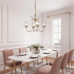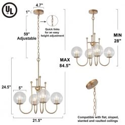 A perfect mix of contemporary design, this 4-Light brass gold modern island chandelier by Uolfin is ideal for adding a geometric flair to your glamorous kitchen, foyer, or living room. Delicately crafted of sturdy metal, its brass gold finish creates instant romance ambiance in your space and is easily adaptable for a range of home decor. This 4-light brass gold island modern island chandelier comes with a 59 in. adjustable hanging chain that accommodates multiple ceiling heights. Whether in the countryside or a busy city, this on-trend gold light fixture will always add modern appeal to any interior by its seamless minimalist silhouette.