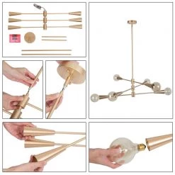 - EASY TO INSTALL: Pre-assembled construction for quick installation. Just with 4 steps as our image shows, you can easily update the aesthetic of your room. All mounting hardware of the modern gold chandelier is included