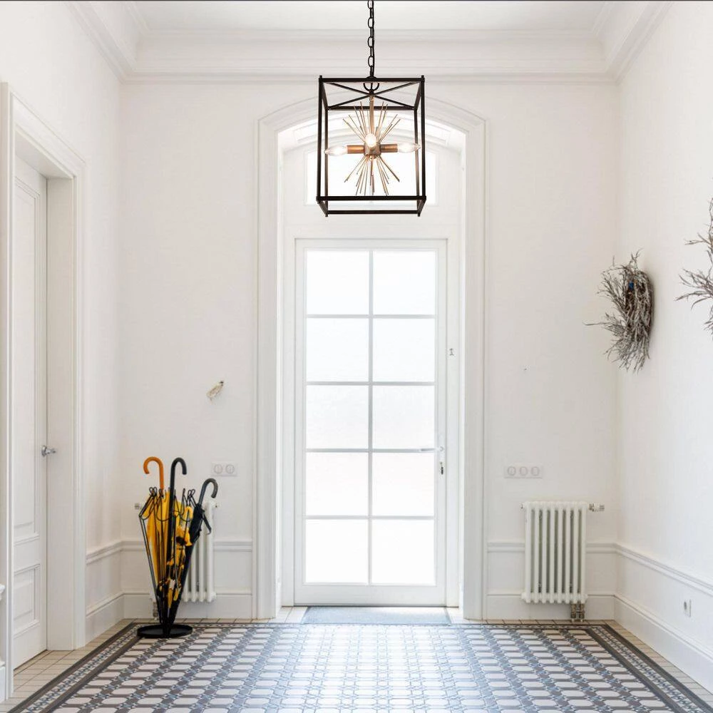 When this Modern Black and Gold Lantern Cage Island Sputnik Chandelier Pendant Light by Uolfin Lighting enters your home, it brings not only lighting but also a unique little world. This dining room chandelier light from Uolfin Lighting takes black & gold paints and absorbs both modern and classic transitional design features. The chandelier light is shaped in a cage and sputnik design, spreading a heavy modern retro sense. 4-Light bulbs (not included) are required, with the bulbs arranged radially, and the open design allows the light to illuminate your room from all directions. Whether you are modern, transitional, industrial, or minimalist, cottage style, you can easily accept this chandelier. If you are also looking for such a transitional industrial chandelier to hang in the living room, bedroom, kitchen, dining room, foyer, corridor, or stairwell, this black gold chandelier will be a versatile choice.