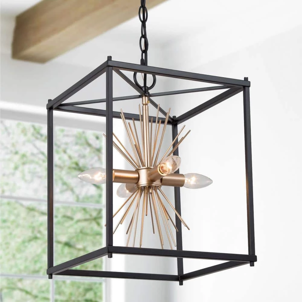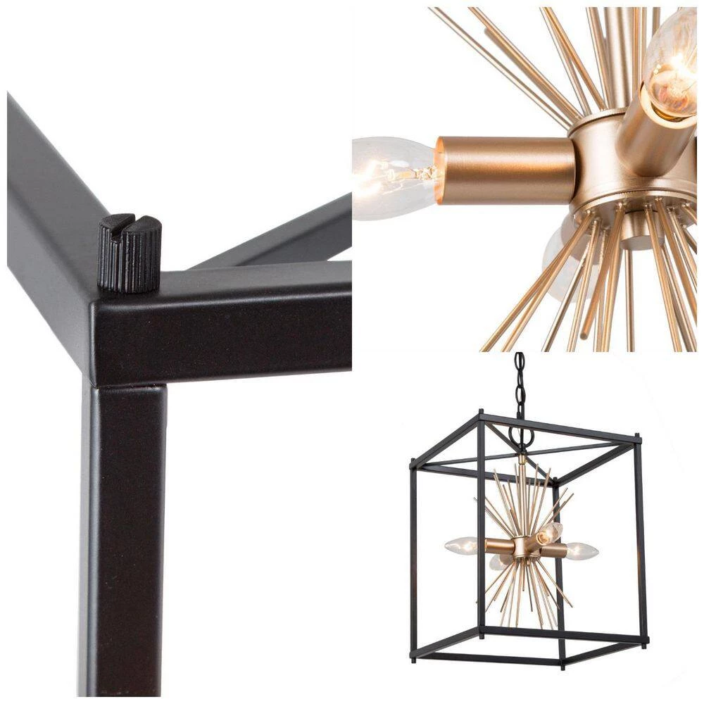 - BULB REQUIREMENTS: The modern gold black chandelier requires 4 max 40-Watt E12/candelabra bulbs (not included) and is compatible with LED, Edison, incandescent, CFL, etc. You can choose the light bulb style you like to match, this pendant can be dimmed and dimmer switched (not included) when using compatible bulbs, everything can be switched as your mood