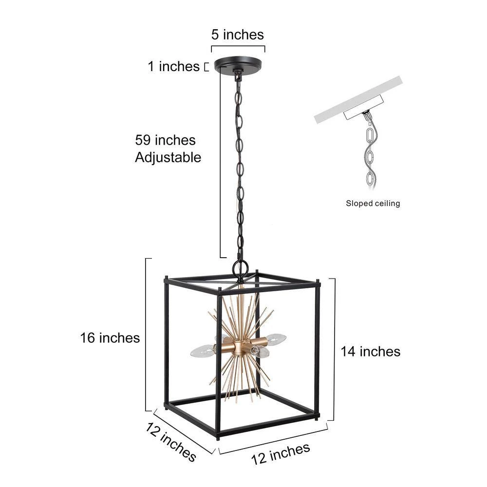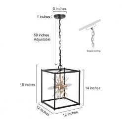 - DIMENSIONS: Fixture body 12 in. W x 12 in. D x 16 in. H, round canopy 5 in. W x 1 in. H, suitable for flat or sloped ceilings