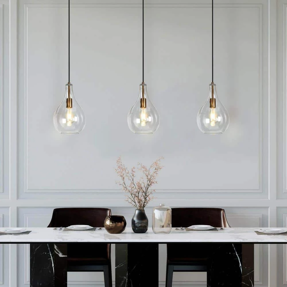 When this shiny electroplated brass industrial mini pendant light by Uolfin Lighting walks into your room, it not only illuminates your room but also brings a special space. This lamp is suspended with a strong cord, and under the modern gold lamp holder is a water-rippled glass lampshade which is shaped in a teardrop design. The shape is simple, but it is mixed with modern, farmhouse, country, cottage, minimalist, industrial and other styles. Because it can be easily blended into various home improvement style houses. Also, its unique glass manufacturing can bring you a different equivalent experience. In this classic golden mini chandelier, you can choose 1, a pair, or multiple hangs to cope with different space sizes. The kitchen, living room, bedroom, bedside, stairwell, foyer, dining room, or island are all places where this lamp can be perfectly matched.