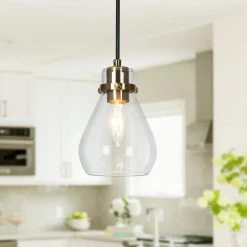 Tired of the large-size chandelier hanging over your kitchen island, then why not replace it with a group of the pendant light that looks more innovative. The kitchen pendant lighting from Uolfin Lighting is designed in a teardrop shape, bringing modern art design to home lighting. The finish of the brass pendant light(s) takes electroplate craft, which makes the finish shinier and not easy to scratch. The clear glass shade softens the light that the glass pendant light(s) emits, offering a warm and not dazzling light. The mini pendant light(s) requires one light bulb (not included), and also works with a dimmer switch (sold separately). Besides hanging in groups over the kitchen island or dining table, it is also suitable to work alone to light up a certain area (bedside for eg.)