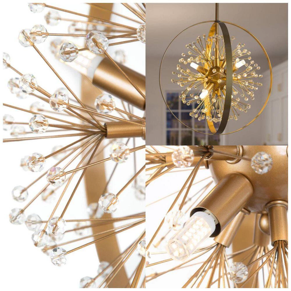 - MODERN GOLD CHANDELIER LIGHT: Gold finish and sputnik provide consistent styles and the unique ceiling light interweaves modern and transitional styles, fully demonstrating a contemporary vibe