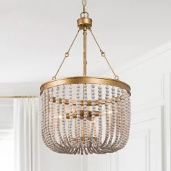 Modern Farmhouse Cage Dining Room Chandelier 4-Light Handcrafted Wood Chandelier by Uolfin