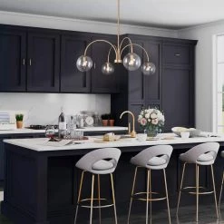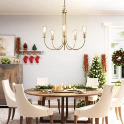 Modern Gold Dining Room Chandelier, 6-Light Island Bell Chandelier with Clear Glass Shades by Uolfin